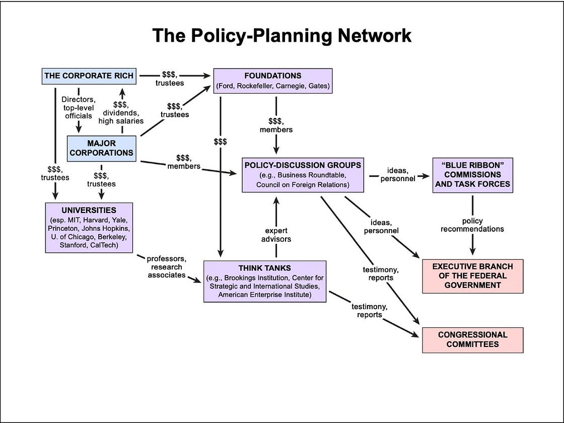 Some other journalists and sociologists claimed to have disproved Burnham’s theory by showing through their research into stock ownership, which Burnham had no access to when he came up with his theory, that the rich families mostly retained control through family offices, holding companies, and other complex financial means available to them. Just because you didn’t see a member of the original family as an executive or director that doesn’t necessarily mean they are not in control, i.e., they have representatives as executives and directors. And on top of that, the “technocrat managers” were in reality being assimilated into upper-class “high society” rather than creating a new managerial elite class for themselves.